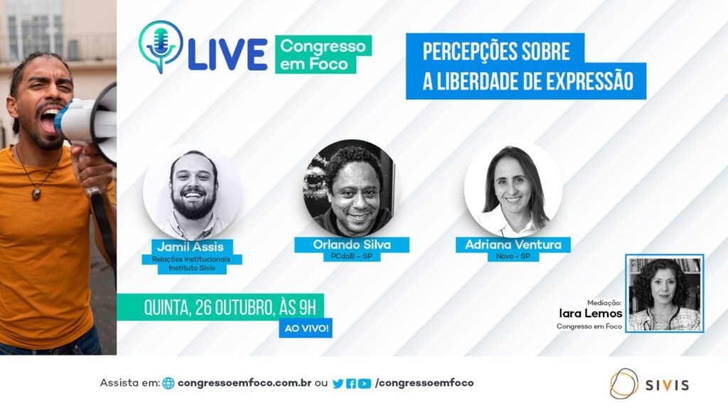 Dia 26/09, 9H: Sivis, Orlando Silva e Adriana Ventura debatem liberdade de expressão