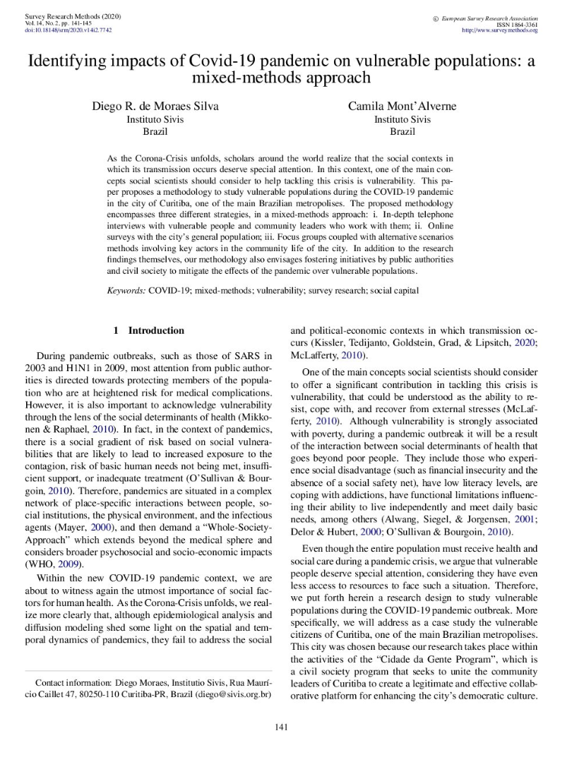 Identifying impacts of Covid-19 pandemic on vulnerable populations: a mixed-methods approach